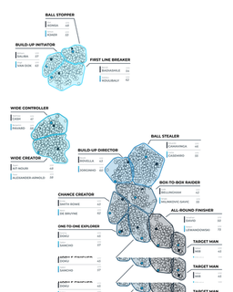 Nel libro The Clustering Project pubblicato da Soccerment troviamo un interessante esempio di utilizzo di questo algoritmo per classificare i giocatori in base alla loro funzione in campo, discostandosi definitivamente da concetti obsoleti basati unicamente sulla loro posizione sul terreno di gioco (terzino, punta, etc.).